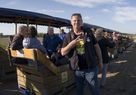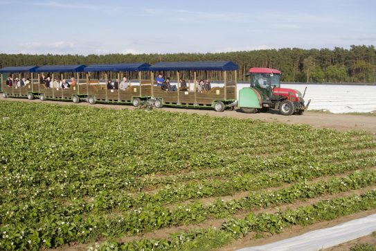 Nach einem fachkundig geführten Rundgang durch die Landesgartenschau Beelitz mit Marina Ringel und Bernhard Knuth führte die Exkursion weiter zum Spargelhof nach Kleistow. Timm Kleist, Geschäftsführer der Gastronomie, hieß die Medienvertreter herzlich willkommen. Mit Dirk Johl „Der Landstreicher“, Personaldienstleister für die Landwirtschaft der Region, ging es dann zunächst mit dem „Felder-Express“ hinaus auf das Spargelfeld. Direkt in einem der Beet-Gräben gab es von Herrn Johl einen detaillierten Vortrag über den Spargelanbau. Auf der weiteren Rundfahrt führte der Weg vorbei am Naturwildgehe, Kletterwald, Streichelzoo und vielen weiteren Attraktionen des Spargel- und Erlebnishofes.