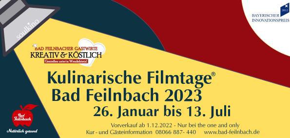 Kultur im Wirtshaus – kreativ, köstlich und gewohnt filmreif. 2012 mit dem Bayerischen Innovationspreis ausgezeichnet, geht das beliebte Feilnbacher Filmfestival von und mit den Kreativ & Köstlich Wirtinnen und Wirten ins Jahr 2023. Eine Filmtour durch ganz besondere Gasthäuser, mit filmischen Schmankerln, abgeschmeckt mit Stargästen, Verlosungen, Filmgesprächen – abgerundet durch ein feines Menü: kreativ und köstlich eben.
