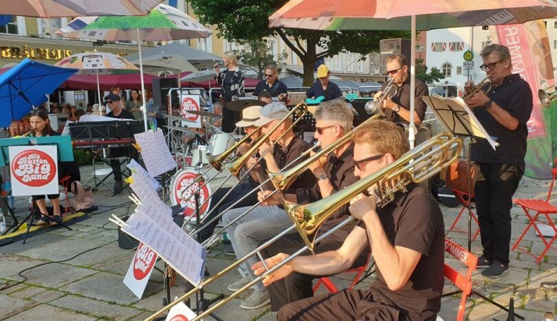 Einen Abend später, am Donnerstag, 10. Juli, ebenfalls von 18 bis 20.30 Uhr, verwandelt sich der Stadtplatz in ein Swing-Tanzparkett: Die Red Button Big Band, bestehend aus Musikern der Musikschule Traunstein unter der Leitung von Hein Kraller und mit Sängerin Silvia Tica, nimmt das Publikum mit auf eine musikalische Zeitreise in die goldenen Jahre des Swings. Klassiker wie „Take the A-Train“ oder „Satin Doll“ lassen nicht nur Erinnerungen aufleben, sondern bringen auch die Tänzerinnen und Tänzer des Lindy-Hop-Clubs „Elephant Swing“ in Bewegung. Ein Abend wie aus der Stummfilmzeit – mit Stil, Schwung und jeder Menge Rhythmus im Blut.