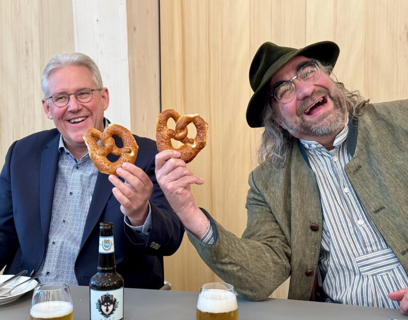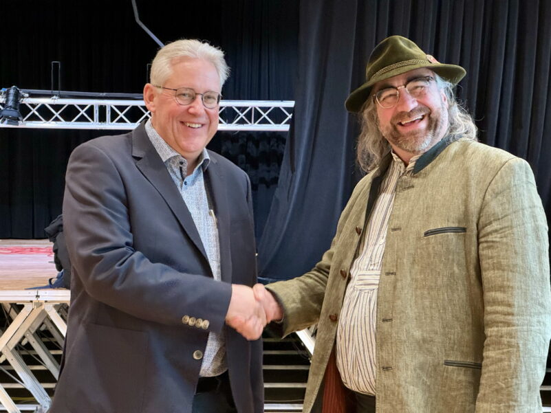 Die Loriot-Gemeinde Münsing und Veranstalter Wolfgang Ramadan werden künftig kulturell zusammenarbeiten. In dem jetzt fertig gestellten Bürgerhaus mit dem wunderschönen Pallauf-Saal sollen regelmäßig Konzerte, Lesungen, Kabarett und Theater aufgeführt werden. „Es freut mich sehr, dass in meiner Nachbarschaft ein so schönes Haus entstanden ist. Dieses ist ein Highlight für das gesamte Oberland und hat viel Potential“, betont Wolfgang Ramadan bei einem gemeinsamen Pressegespräch mit Münsings Erstem Bürgermeister Michael Grasl .
