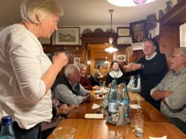 Am Abend erwartete die Reisenden am Baumannhof in Signat ein zünftiges Südtiroler Törggelen. Bei hausgemachten Schlutzkrapfen, gebratenen Rippelen, knusprigen Apfelkiachlan und dem hauseigenen Wein genoss die Gruppe einen geselligen Abend in fröhlicher Atmosphäre. Schwester Hanna und die Vorsitzende, Frau Bichl, blickten dabei auf 15 Jahre vertrauensvolle Zusammenarbeit zurück – ein schöner Anlass, der an diesem Abend in besonderer Herzlichkeit gefeiert wurde.