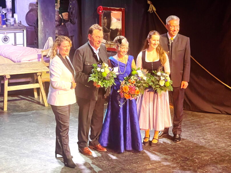 Eingangs würdigte der Landrat die Vielfalt des professionellen und ehrenamtlichen Kulturschaffens im Landkreis, Riederings Bürgermeister Christoph Vodermaier stellte die gerade vom Theaterzelt ausgehende Lebensfreude in den Mittelpunkt seines Grußwortes. Die Laudationes hielt die Kulturreferentin des Landkreises Rosenheim, Anke Hellmann – worüber wir noch gesondert berichten.