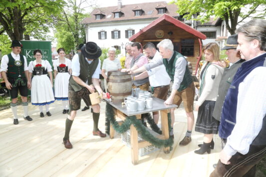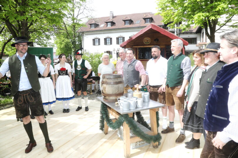 Bei herrlichem Biergartenwetter wurde im Rahmen des erstmals von der Brauerei iniziierten Brauer-Maifestes von Braumeister Thomas Drechsel das neue Maibier vorgestellt und zum Ausschank freigegeben. In Anwesenheit der vielen Biergartenbesucher und Vereinsvertreter zapfte er das erste Fass an und erklärte den Gästen das Besondere am neuen Taufkirchner Maibier. So wurde erstmals mit Hersbrucker Hopfen aus Hersbruck in Franken gebraut. Als spritzig, vollmundig und hopfig beschrieb er das neue Spezialbier, das er zusammen mit der Taufkirchner Brauwerkstatt, einem Zusammenschluss der Bierfreunde Werner Lechner, Michael Barth und Alex Barthel eingebraut hatte. Selbstverständlich nach dem Reinheitsgebot und mit regionalen Rohstoffen. Das Bier sei zwischen Hellem Exportbier und klassischem Maibock angesiedelt und mit 14,2 ProzentStammwürze und 5,9 Prozent Alkohol eine runde Sache. Auch die Bierkenner im Biergarten waren sich schnell einig, dass das Maibier qualitativ voll überzeugen konnte. Begleitet wurde der Anstich von Auftritten und Ehrentänzen des Trachtenvereins “d’Vilstaler”Gebensbach, deren Mitglieder auch das neue Etikett zieren dürfen. Zur musikalischen Unterhaltung spielte die Blasmusikkapelle “Kreizfidoi” aus Vilsbiburg boarisch zünftig auf. Als Hauptpreis der Verlosung für die Besucher gab es eine Brauereiführung mit anschließender Verköstigung für 15 Personen und weitere Sachpreise zu gewinnen. Das neue Maibier kann ab sofort, solange der Vorrat reicht bei der Brauerei und im Handel erworben werden.
