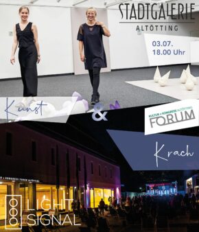 Nicht am 3. 7., sondern am 11.7. gehen Stadtgalerie und KULTUR+KONGRESS FORUM ALÖTTING gemeinsame Wege: Bei Kunst & Krach ist der Name Programm. Die Stadtgalerie verlängert ihre Öffnungszeiten, das FORUM breitet sich auf den Zuccalliplatz aus und gemeinsam wird ein Abend voll Kunst und Musik geboten.