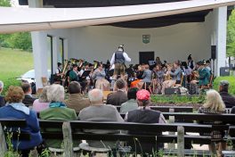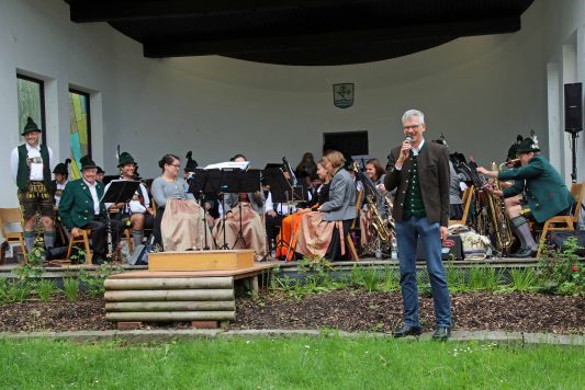 Die Musikkapelle Bernau unter ihrem Dirigenten Albert Osterhammer eröffnete mit einem musikalischen Frühschoppen am Pfingstsonntag die Saison der Kurkonzerte. Trotz windigem und unsicherem Wetter fanden sich am vergangenen Sonntag im Kurpark neben Bürgermeister Philipp Bernhofer, Altbürgermeister Klaus Daiber, Tourist-Chef Christoph Osterhammer und Kulturreferentin Michaela Leidel auch viele Kirchgänger und Freunde der Kapelle ein, um dem bunten Reigen des Orchesters zu lauschen. Bernhofer nahm dies auch gleich zum Anlass, auf die verschiedensten kulturellen Ereignisse in diesem Sommer hinzuweisen und forderte auf, die künstlerischen, musikalischen und theatralischen Veranstaltungen zu besuchen. „Bernau hat viel qualitativ Hochwertiges zu bieten!“ Der Kapelle spendierte er, einer alten Tradition folgend, noch zwei Kästen mit Getränke für die Musikanten. Zu hören gab es neben einem Querschnitt aus dem Jahreskonzert auch einige bayrisch-böhmische Polkas und Walzer, die von Irene Biebl-Daiber charmant anmoderiert wurden. Ab Anfang Juli beginnen dann wieder die wöchentlichen Standkonzerte immer dienstags im Kurpark bei freiem Eintritt.