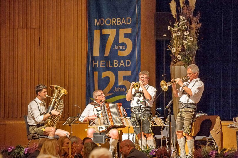 Auch der stellvertretende Landrat Josef Huber verzichtete mehr oder weniger auf die vorbereitete Festrede und sorgte mit dem Satz zur Wirkung des Moorheilbads „Junge Frauen haben sich ins Moor gelegt, damit sie schwanger werden“, und seiner nachfolgenden Bemerkung „I kenn des eigentlich anders“ für großes Schmunzeln. Er bezeichnete Bad Aibling als „Perle des Landkreises“ und ist sich sicher, dass auch das 250-jährige Jubiläum gesichert ist.