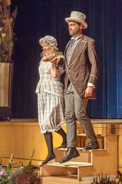 Der krönende Abschluss und für alle Gäste eine Überraschung war die von der AIB-KUR und dem Theater Bad Aibling organisierte historische Modenschau. Moderiert von Richard Lindl, selbst in historischem Gewand, startete die Modenschau in den 90er-Jahren, in der Aerobic schwer „angesagt“ war, bis hin ins Jahr 1845, wo Schwimmen als Freizeitvertreib hoch im Kurs stand. Die Kostüme wurden unter dem Aspekt „Besuch im Kaffeehaus & Sport“ ausgewählt, und so pärchenweise mal von der Dame und mal vom Herrn präsentiert, wie das sportliche Outfit beziehungsweise die teils noble Alltagskleidung aussah. Die „Hinterberger Musikanten“ sorgten für die musikalische Unterhaltung und einige Ehrengäste durften sich über ein persönliches Tischkonzert freuen. Kulinarisch wurden die Gäste von der Kurhaus-Gastronomie der Familie Forster versorgt.