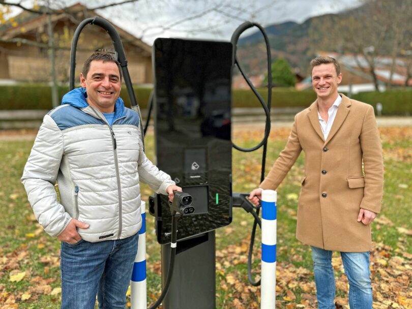 Bericht und Bilder: Tourist-Information Aschau i. Chiemgau – Herbert Reiter – Stefan Aberger (Kommunaler Energiewirt der Gemeinde Aschau i.Chiemgau – links im Bild) und Florian Scharnagl (Teamleitung Vertrieb E‑Mobility Maxsolar GmbH – rechts im Bild).