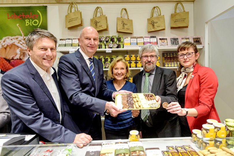 Anlässlich des Brandenburg-Tages besuchten Brandenburgs Ministerpräsident Dietmar Woidke und Landwirtschaftsminister Axel Vogel den Messeauftritt ihres Bundeslandes in Halle 21. Woidke lobte das neue, in rot und weiß gehaltene Design und probierte die Produkte regionaler Produzenten. Später dirigierte er das Brandenburger Polizeiorchester zur Landeshymne „Märkische Heide“. Er sagte: „Die Grüne Woche ist für uns viel mehr als eine Ernährungs- oder Landwirtschaftsmesse. Für uns ist die Grüne Woche auch eine Regionalmesse, also eine Touristikmesse, wo sich Regionen präsentieren. Alle Landkreise sind hier und deswegen ist für uns die Grüne Woche aus dem Brandenburger Messekalender nicht wegzudenken.“ Axel Vogel hob die Internationalität der Grünen Woche hervor. Er hoffe, dass die Aussteller tatsächliche Marktkontakte knüpfen können. „Wir produzieren so viele tolle Sachen, die außerhalb von Brandenburg und Berlin vollkommen unbekannt sind, und hoffen, dass Handelsvertreter darauf stoßen, damit unsere Unternehmen ihr Angebot ausweiten können.“ Halle 21, Kontakt: Florian Engels, Telefon: 0331 866 1208, E-Mail: florian.engels@stk.brandenburg.de