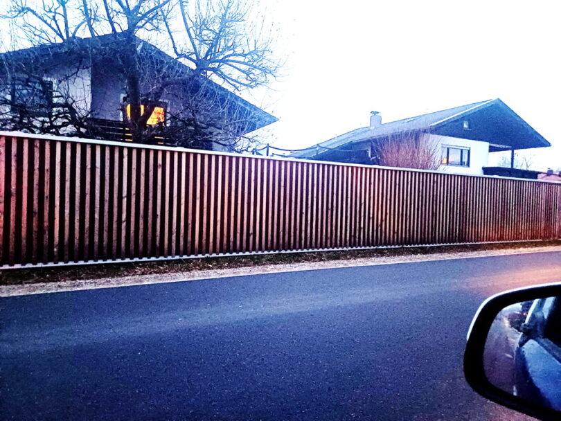 Bericht und Foto: Christiane Giesen – Beispiele für Lärmschutzwände im Gemeindegebiet Übersee, wie sie im vergangenen Bauausschuss gezeigt wurden. – Foto einer Lärmschutzwand an der Grassauer Straße