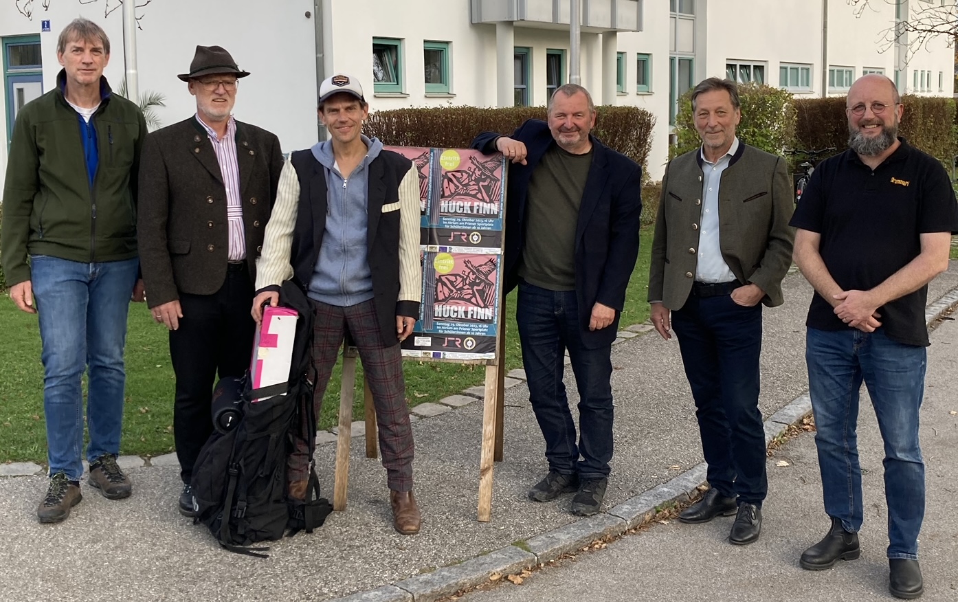 Herr Kölbl (2 von links) vom AELF Rosenheim und der 2. Vorsitzende der LAG Chiemgauer Seenplatte Herr Linner (2. von rechts) besuchten das Theaterstück Huck Finn. Foto: Bühnenkunst Förderer e.V.