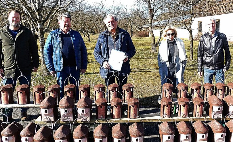 „Mit dieser Aktion der beiden Gartenbauvereine haben alle Bürger der Gemeinde Schnaitsee einen Vorteil. Exakt so sind die Ziele von LEADER verwirklicht. Wir bezahlen in diesem Rahmen die Nistkästen und Material für Insektenhotels in Höhe von 1500 Euro.“ Auch Bürgermeister Thomas Schmidinger freute die Unterstützung für diese Aktion. „Wir haben durch LEADER in der Gemeinde so viel Positives erfahren. Die Mitgliedschaft ist ein großer Gewinn für uns.“ In diesem Zusammenhang nannte er in erster Linie die Unterstützung beim TSV-Sportheimbau mit 200000 Euro. Maron und Schmid bedankten sich bei den Gästen von LEADER für die großartige Unterstützung. Der Waldhauser Vorsitzende erklärte noch, dass die Nistkästen aus unverwüstlichem Holzbeton bestehen und in erster Linie von Meisen bewohnt werden.