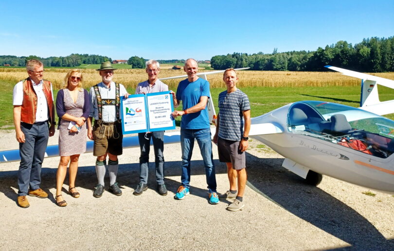 Der Fliegerclub Condor e.V. Antersberg will seinen Flugbetrieb und damit den Verein zukunftsgerichtet modernisieren. Den Startschuss konnten die Beteiligten kürzlich am Vereinsgelände bei strahlendem Sonnenschein gebührend feiern. Der dort überreichte LEADER-Förderbescheid in der LAG Mangfalltal-Inntal ermöglicht es dem Verein, ein modernes Schulungsflug-zeug mit Transportanhänger sowie Materialien für einen Flugsimulator zu beschaffen.
