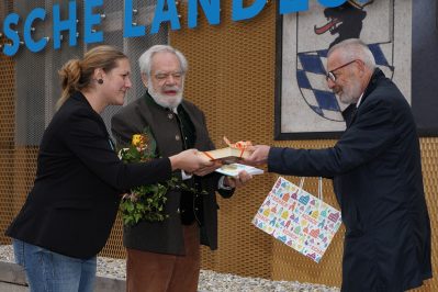Wie lohnend der Besuch der Bayerischen Landesausstellung ist, hat eine Vielzahl an Gästen bereits bewiesen. Am Dienstag, 29. September 2020 konnte im FeuerHaus in Aichach Freifrau Elvira von Lutz aus Aichach als 45.000ste Besucherin zusammen mit ihrem Vater Freiherr Hannes von Lutz aus München begrüßt werden. Die Freude bei den Veranstaltern war gleichermaßen groß, dass sich trotz der Einschränkungen schon so viele auf die Spuren der Wittelsbacher Städtegründungen begeben haben.