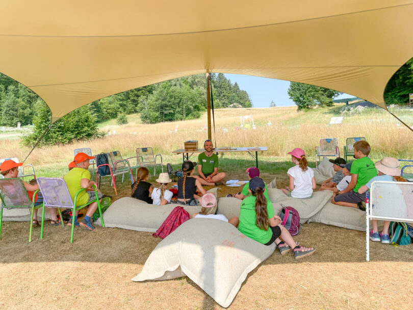 Bei der „Schule im Grünen“ werden die Bereiche Natur & Umwelt, Gesundheit & Ernährung, Soziales, Kultur & Kreatives sowie Medien & Technik angeboten. „Das Programm ist sehr kindgerecht, integriert Bewegung und Ruhe gleichermaßen, der Ort ist traumhaft: Es ist ein Wandertag, der sehr lehrreich ist und von dem die Kinder begeistert sind“, schwärmt Sabine Schmid-Boitz, die gerade mit einer ersten Klasse der Grundschule am Schloss Wolfstein in Freyung vor Ort ist. „Viele sind aus der Region, aber wir hatten schon einige Gruppen aus dem Passauer Land hier“, erzählt Sofie Hofbauer, die für den Nationalpark Bayerischer Wald das Schulprogramm durchführt. Während es hier um wilde Tiere und alte Bäume geht, lernen weiter unten die Kleinen den Lebensraum Wiese kennen.