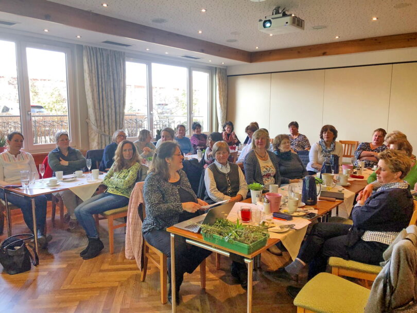 Zum Thema: Heilkräuter in Garten und Wiese referierte Maria Grill Besonders interessant war die Anwendung der Kräuter für die zahlreich erschienenen Landfrauen. Denn: “Es gibt kein Unkraut. Jedes noch so unbeliebte Kraut findet in der Hausapotheke seinen Platz.” so Maria Grill