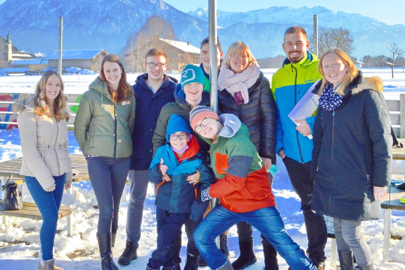 1.000 Euro hat die Katholische Landjugendbewegung Aising-Pang (KLJB) jetzt an den Verein zur Verbreitung der konduktiven Förderung „Fortschritt Rosenheim“ gespendet. Der Betrag stammt zum Teil aus dem Erlös der Nikolaus-Aktion und die KLJB hat noch etwas drauf gelegt. Einige Mitglieder der KLJB-Vorstandschaft haben bei einer Führung durch die Private Grund- und Mittelschule Oberaudorf-Inntal gesehen, wofür die Spende aus diesem Jahr und die aus den Vorjahren verwendet werden. Sie fließen unter anderem in das Projekt „Betriebliche Inklusion“, das junge Menschen mit Behinderung beim Übergang zwischen Schule und Beruf unterstützt. Projektleiterin Sabine Senfter (Dritte von rechts) nahm das Geld zusammen mit einigen Schülern im Garten entgegen. Die KLJB haben vertreten (von links): Sophie Rinser, Anna Gilg, Markus Dinzenhofer, Josef Wick und Maria Anretter.