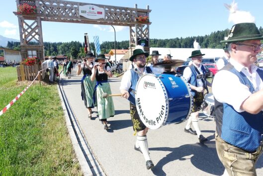 Insgesamt sehr zufrieden zeigte sich Festleiter Florian Fischer mit dem bisherigen Ablauf der Priener Festwochen. Im zweiten Teil des Festzeltangebotes übernahm die Jungbauernschaft die Gestaltung. War beim Kabarett-Abend mit Stefan Kröll und mit der Kapelle So & So der Besuch nicht ganz den Erwartungen entsprechend, so kam bei dieser in die Bar verlegte Veranstaltung dennoch eine gute Stimmung auf. Rappelvoll war das Festzelt beim Bier- und Weinfest mit den „Anzwies-Musikanten“ und vor allem viele Jugendliche fanden sich beim Gastspiel der Kapelle „Los Brudalos“ ein. Den Abschluss – dann wieder gemeinsam mit dem Trachtenverein Prien – bildet am Montag, 30. Juni ab 18 Uhr ein Kesselfleischessen mit der Kapelle „Bast scho“ sowie mit der Gruppe „Probiermas“ als Bar-Musik. Einlass und Bewirtung ist ab 17 Uhr. Bereits am Dienstag, 1. Juli und Mittwoch, 2. Juli erfolgt der Rückbau des Festzeltes und die Säuberung der Festwiese. Die Arbeiten beginnen jeweils um 8 Uhr, freiwillige und ehrenamtliche Helfer sind aus den Reihen der Jubiläumsvereine, aber auch darüberhinaus herzlich willkommen.