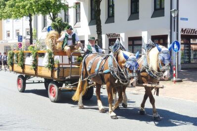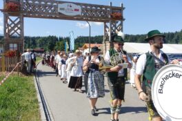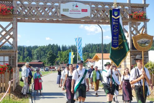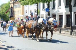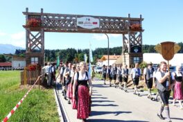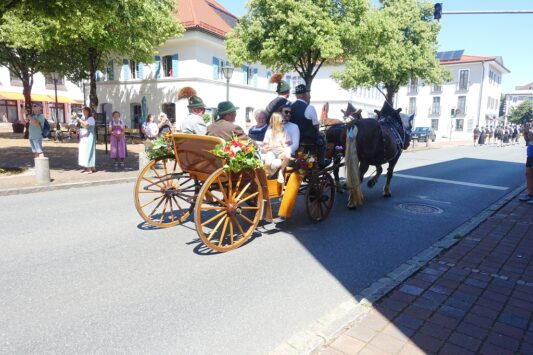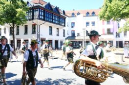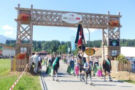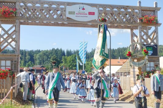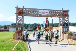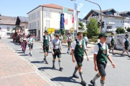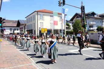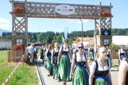 42 Jugendgruppen gehören dem Bezirksverband Oberbayern mit Verena Stichlmeyr und Johannes Sing als Vorsitzende an. Die JB Prien zählt zu den aktivsten und mitgliederstärksten Vereinen. Das zeigte sich dann auch beim Festzug mit den rund 1.360 angemeldeten jungen Dirndl und Buam aus den Reihen von landwirtschaftlichen und kirchlichen Gruppierungen aus ganz Oberbayern. In drei Zügen – voran mit Festleiter Florian Fischer – mit Blasmusik, Fahnenabordnungen, dem Priener Trachtenverein, den Ortsvereinen und mit landwirtschaftlichen Motivwägen ging es vorbei am Rathaus zum Marktplatz und dann wieder zurück ins Festzelt. Dort spielte dann die Blaskapelle Obing auf. Den Abschluss des Festzuges bildete das stattliche Gespann des Hofbräuhauses Traunstein mit vier Rössern.