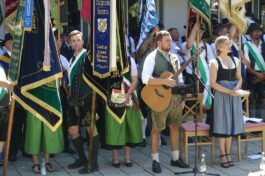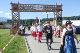 Für JB-Vorsitzenden Florian Krempl war es eine Freude, dass sich so viele Teilnehmer und Besucher am Gottesdienst in Trautersdorf einfanden. Sein Dank galt vor allem den Bauersfamilien und Grundstücksbesitzern von Trautersdorf für Festplatz, Parkplätze und Kirchenwiese, dem GTEV Prien für das gute Miteinander bei den Priener Festwochen, den Gründungsmitgliedern (allen voran dem Initiatoren der JB-Gründung Ludwig Strohmayer) sowie Feuerwehr, Polizei, Rotes Kreuz und Bauhof von Prien für die allseitige Unterstützung. Erster Bürgermeister Andreas Friedrich sprach in seinem kurzen Grußwort als Schirmherr der beiden Priener Vereinsjubiläen von einem großen Ereignis in und für Prien und sagte: „Die Gesellschaft lebt nicht von Straßen und Wirtschaftskraft, sondern von Menschen, die mehr tun als Andere. Ihr seid solche Leute, die über die eigenen Einzelinteressen hinweg zum Gemeinwohl beitragen. Bitte lasst nicht nach bei der Weiterentwicklung der Traditionen, seid weiterhin offen für Neues, bleibt bodenständig und zeigt auch fortan Respekt vor Landwirtschaft, Kultur und Schöpfung. Alsdann seid Ihr auch in Zukunft eine feste Säule in unserer Gemeinde und Gemeinschaft“.