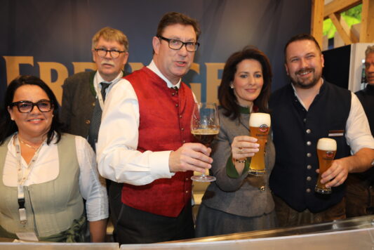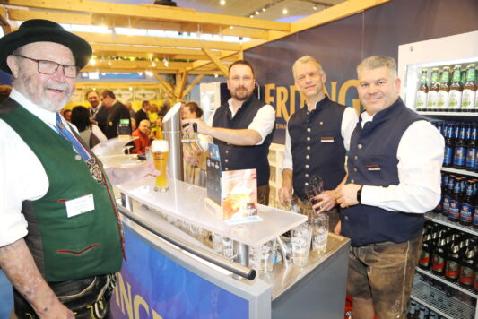 -6761 Die Erdinger Deligation am Erdinger Messeestand in der Bayernhalle