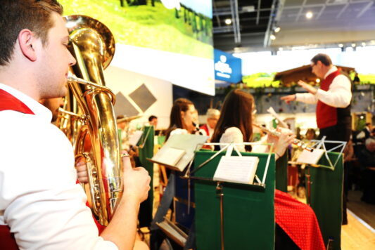 Fast 50 Musik- und Trachtengruppen und rund 800 Mitwirkende bringen bayerische Lebensfreude nach Berlin und zeigen, wie Bayern tanzt, musiziert und feiert. „Mehr Bayern geht nicht! Die Bayernhalle steht für Genuss, Tradition und Lebensfreude“, so die Ministerin. Die Kombination aus Tradition, Genuss und Erlebnis macht den Erfolg des bayerischen Auftritts aus. „Den Berlinern und ihren Gästen wollen wir an den zehn Tagen die Vielfalt, Lebensfreude und den Genuß-Reichtum von Bayern zeigen, da passen die Trachtler- und Musikanten-Auftritte und Informationen auf der Bühne rund um das bayerische Brauchtum bestens dazu“. Der Messestand Erding kommt sehr gut hier an sozusagen als warer Besuchermagnet „Die international beachtenswerte Ausstellung bietet eine große Anzahl von Kontakt-Möglich-keiten und ist eine hervorragende Werbeplattform“, so die Carmen Mittermeier, Mitarbeiterin des Erdinger Landratsamts, Kreisentwicklung, deren Werbebemühungen noch durch einen Informationsstand des Tourismusregion Erding unterstützt wurde. Zugpferd am Stand ist zum einem das bekannte Weißbier der Privatbrauerei Erdinger Weißbräus und zum anderem die kleine Backstation der Erdinger Landfrauen. Im Rekord zaubern sie Schmalzgebackenes wie Auszogne, Apfelkirche, Quarkblumen, Schuxn und erstmals Steaksemmeln frisch auf den Tisch. “Alles geht weg wie warme Semmeln”, die Erdinger Landfrauen backen das täglich. Mit aus Erding nahmen sie Parlettenweise Lebensmittel, Mehl, Eier, Milch, Butter, Fett, Hefewürfeln, Äpfel, Kaffee und Zucker mit. Die Besucher sind begeistert, sagte Erdings Ehrenkreisbäuerin Elisabeth Mayr. Ebenfalls mit von der Partie war der Gauverband 1 aus dem Gebiet Inn-Salzach wobei auch die Trachtenvereine “d’Vilstaler” Gebensbach und Almenrausch” Wasentegernbach, beide aus dem aus dem Erdinger Land. Mit schmissigen Märschen, Polkas, Walzer und Landler hatte die Blaskapelle Finsing, die “Lustigen Finsinger”, Landkreis Erding, unter der Leitung von Walter Huber ihrem Auftritt auf der Bühne die vielen Besucher, Gäste und Ausstellern in der beliebten Bayernhalle. Hochprozentige Edelbrände, Schnäpse, Liköre und Gin aus eigener Herstellung werden vom Andreas Huber aus Langenpreising gereicht. Die Familie Huber sind mit ihren hochprozentigen Edelbränden mehrmaliger Staatsehrenpreisträger in jeweiliger Goldauszeichnung somit eine echte Rarität auf der Grünen Woche, bereits zum fünften Mal.