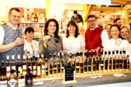 -7266 Die Ministerin Michaela Kaniber überzeugte sich am Stand von Andreas Huber zusammen mit seiner Mutter Magdalena aus Langenpreising mit ihren hochprozentigen Edelbränden und mehrmaligen Staatsehrenpreisträger