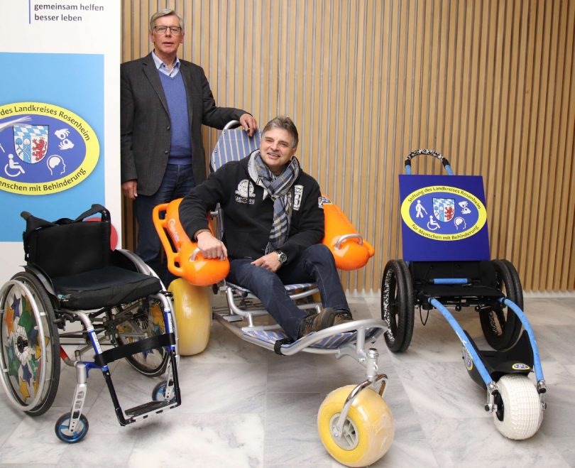 Sepp Höck und Hans Kerschbaumer von der Stiftung des Landkreises für Menschen mit Behinderung berichteten von ihrem Projekt, Strand-Rollliegen an verschiedenen Badeseen in der Region einführen zu wollen. Wie Sepp Höck sagte, sei ihm die Idee gekommen, als er im Urlaub in Italien war. Als er mit seinem Rollstuhl am Ufer stand, fragte ihn ein Wasserwachter, ob er nicht ins Wasser wolle. Dort hätte er die Strandrollliegen das erste Mal gesehen und getestet. Seit dem vergangenen Jahr sind am Simssee und in Prien verschiedene Liegen getestet worden, bis man schließlich die richtige gefunden habe, sagte Kerschbaumer. Menschen mit Behinderungen können damit selbständig ins Wasser gehen. Die ersten beiden Rollliegen sollen für diesen Sommer in Prien installiert werden, zwei weitere am Badeplatz in Pietzing. Ihr Wunsch ist es, die Liegen flächendeckend an den Badeseen im Landkreis Rosenheim anbieten zu können.