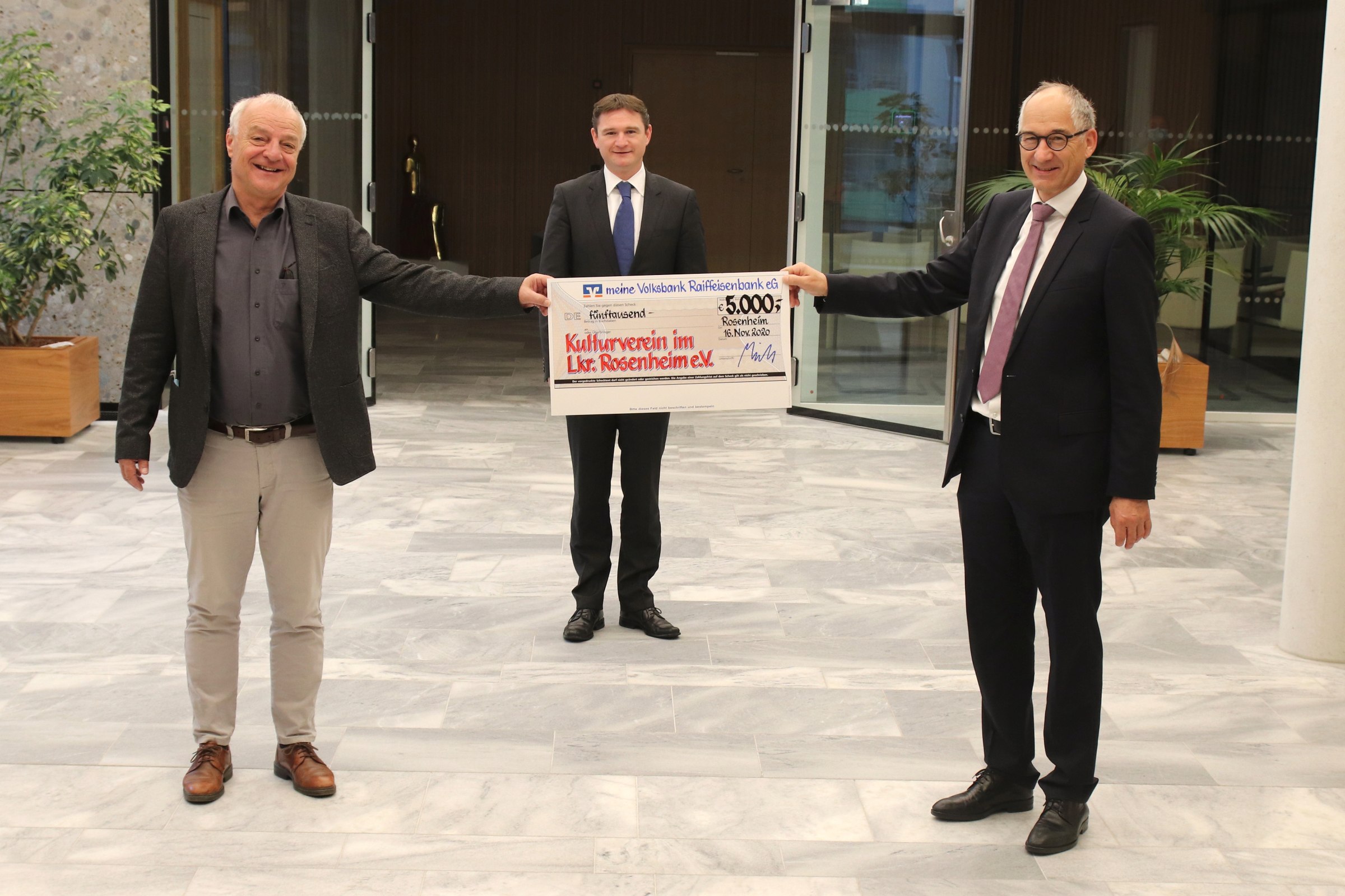 Anlässlich einer Vorstandssitzung mit Jens Köhler als Gast im Landratsamt überreichten er und Dr. Müller als Antritts- bzw. Abschiedsgeschenk dem Kulturverein einen großzügigen Spendenscheck in Höhe von 5.000 Euro.
