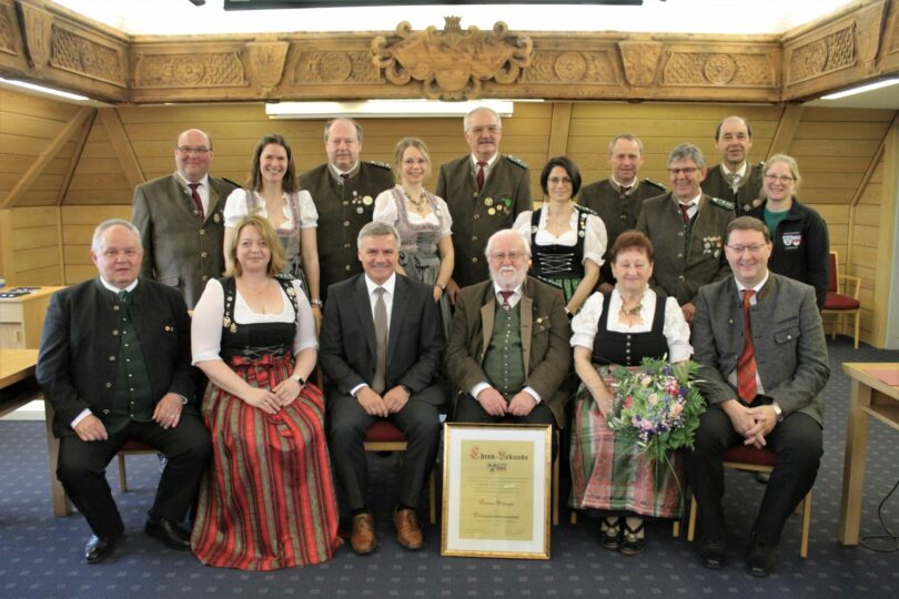 Im Rahmen der Verabschiedungsfeier erhielt Gerhard Schipper noch eine besondere Auszeichnung: Er ist zum Ehren-Gauschützenmeister des Schützengaus Landshut ernannt worden. Heinke Gschlößl, 1. Gauschützenmeisterin, überreichte ihm die Ernennungsurkunde. „Keinem anderen als ihm würde die vorzunehmende Auszeichnung aus unserer Sicht zustehen.“, betonte sie bei ihrer Laudatio für Gerhard Schipper. Der 73-Jährige ist im Januar 1970 in den Schützenverein St. Hubertus Niederaichbach eingetreten. Dabei hat er schon frühzeitig im Schützenwesen Aufgaben übernommen, so dass er auf ein über 50-jähriges ehrenamtliches Engagement zurückblicken kann – anfangs in seinem Heimatverein, u. a. als Schriftführer, Sport- und Jugendleiter, Vereinskassier oder Schützenmeister. Später übte er auch im Schützengau Landshut verschiedene Ehrenämter aus. Aufgrund seines unermüdlichen Einsatzes konnte Gerhard Schipper im Verlauf seiner Funktionärstätigkeit im Schützenwesen viele Ehrungen in Empfang nehmen.