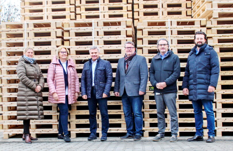 Weltweit im Einsatz, auf individuellen Kundenwunsch gefertigt und vollständig verwertbar: Das zeichnet die Produkte von Mailhammer-Högl aus. Neben dem Hauptsitz in Bruckberg unterhält der Verpackungsspezialist mittlerweile fünf weitere Standorte – unter anderem in Altheim in der Gemeinde Essenbach. Eben diese Niederlassung hat Landrat Peter Dreier gemeinsam mit dem Landkreis-Wirtschaftsreferenten Ludwig Götz und Essenbachs Bürgermeister Dieter Neubauer besucht. Exportverpackungen und Kisten, Paletten, spezielle Verpackungsmaterialien für Gefahrgut und Sonderverpackungen und dass alles aus dem nachwachsenden Rohstoff Holz: Das Portfolio des Familienunternehmens ist breit gefächert, umfasst den gesamten Lebenszyklus der Verpackung, von der Entwicklung über die Produktion bis hin zu Recycling bzw. energetischer Resteverwertung. Rund 75.000 Kubikmeter Schnittholz werden pro Jahr für die Produktion eingekauft – von regionalen Anbietern, aber auch aus Skandinavien und Österreich stammen die Rohstoffe. Um die Produktion steigern zu können, ist in Altheim eine voll automatisierte Palettenlinie in Betrieb gegangen: Ein großer Schritt in Hinblick auf die Automatisierung und Digitalisierung innerhalb des Betriebs.