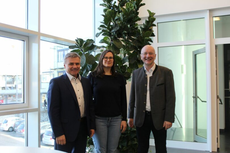 Titelbild: Landrat Peter Dreier und Oberbürgermeister Alexander Putz wünschen Öko-Modellregionsmanagerin Veronika Stanglmayr viel Erfolg beim Aufbau dieses großen Projektes.