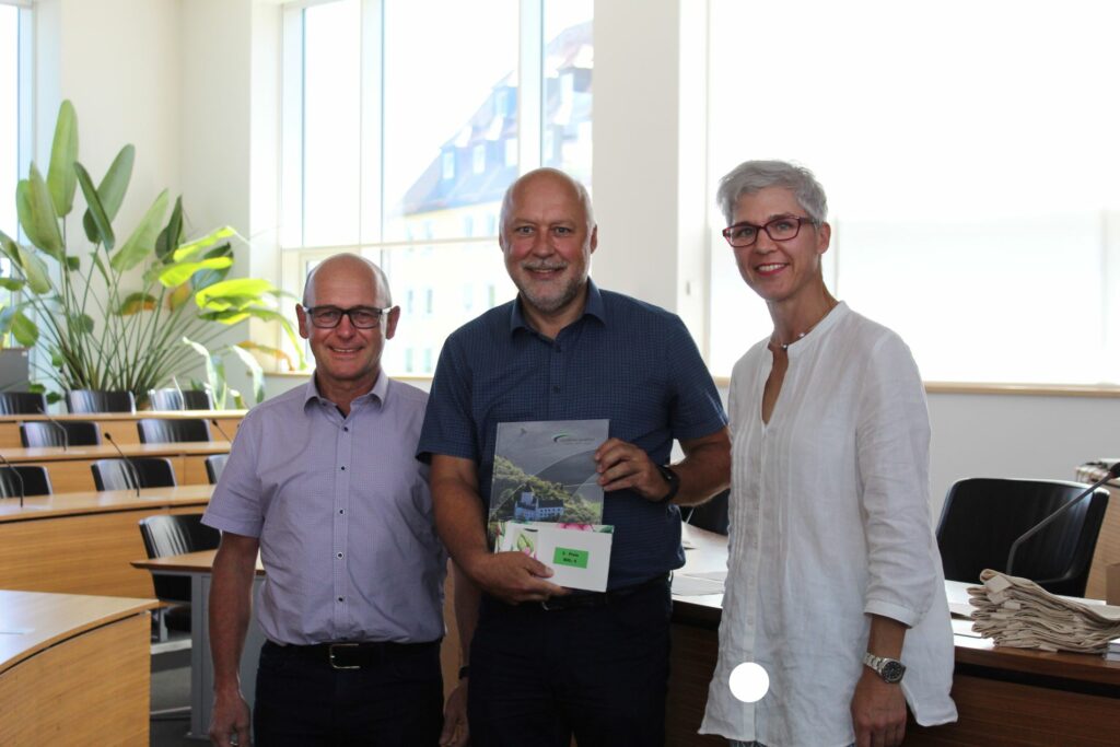 Bürgermeister Stefan Scheibenzuber (Mitte) nahm für die Gemeinde Wörth a. d. Isar das Preisgeld für den zweiten Platz von stellv. Landrat Sebastian Hutzenthaler und Eva Brunner, Tourismus Landkreis Landshut, entgegen.