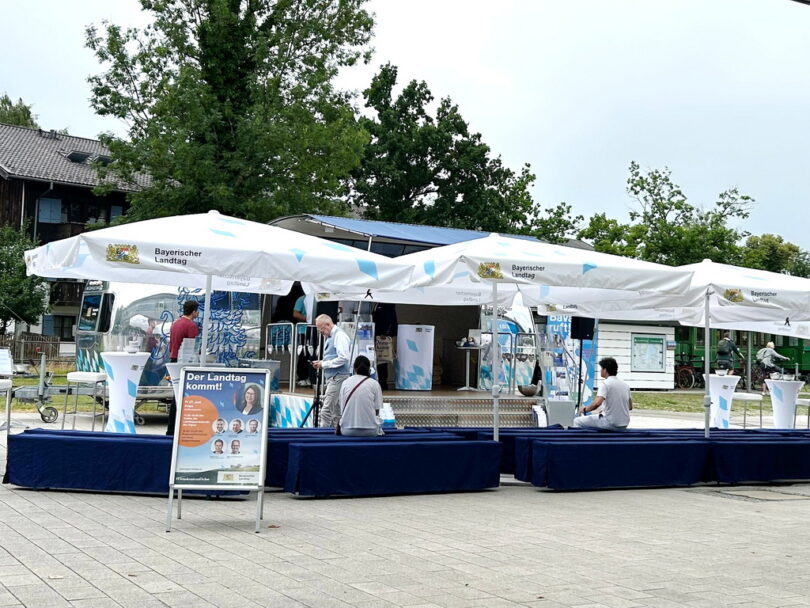 “Demokratie auf Achse” – so lautet eine Initiative des Bayerischen Landtags mit Hilfe eines mobilen Präsentationswagens.