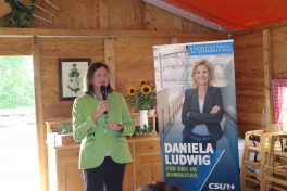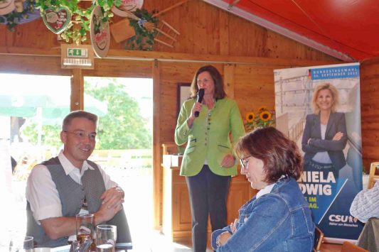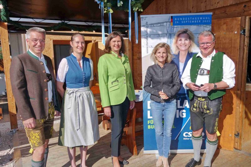 In der Kampenalm beim Gasthaus Kampenwand in der Gemeinde Bernau a. Chiemsee war die Bayerische Landtagspräsidentin Ilse Aigner zu Gast. Eingeladen hierzu hatten CSU-Kreisvorsitzender Klaus Stöttner zusammen mit der Bundestagskandidatin Daniela Ludwig. In ihrem Grußwort machte Bernaus Bürgermeisterin Irene Biebl-Daiber darauf aufmerksam, dass sowohl in der Lokal-, Kreis-, Landes- als auch Bundespolitik Frauen wichtige Ämter begleiten und wertvolle Arbeit leisten. Unter anderem gemeint waren damit Ilse Aigner, seit 10 Jahren Vorsitzende vom CSU-Bezirksverband Oberbayern und ehemalige Bundeslandwirtschaftsministerin, die Bundestagsabgeordnete Daniela Ludwig, die ebenfalls zusammen mit Landrat Otto Lederer anwesende stellvertretende Landrätin Marianne Loferer sowie die langjährige Rosenheimer Oberbürgermeisterin Gabriele Bauer. Mit dem guttuenden Blick auf diesen Wandel und mit sorgenvollen Blick auf die Sonntagsumfragen zur Bundespolitik appellierten die Redner, der CSU sowohl die Erst- als die Zweit-Stimmen zu geben. „Nur wer am Regierungstisch sitzt kann gestalten und wir wollen weiter gestalten und nicht schimpfen aus der Opposition“, so Daniela Ludwig. Und mit Blick auf den ebenfalls anwesenden Präsidenten der Technischen Hochschule Rosenheim, Prof. Dr. hc Heinrich Köster sagte der Landtagsabgeordnete Klaus Stöttner: „Die Bildungs-Politik ist die Wirtschafts-Politik von morgen“. Landtagspräsidentin Ilse Aigner sprach sich gegen eine Vermögens- und Erbschaftssteuer aus, sie forderte Unterstützung für die Landwirtschaft, für den ländlichen Raum, gegen den Wolf und für die Familienpolitik und sie wünschte sich mehr Impfbereitschaft im Kampf gegen Corona („98 Prozent der Ärzte in Deutschland sind geimpft, das spricht doch ebenso für sich wie 92.000 Corona-Tote inzwischen“).