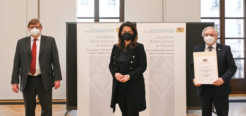 Mit der Staatsmedaille in Silber hat Staatsministerin Michaela Kaniber den Leiter des Amts für Ländliche Entwicklung Niederbayern, Leitenden Baudirektor Josef Reidl, ausgezeichnet. Die Ministerin würdigte damit die herausragenden Verdienste des scheidenden 65-jährigen Behördenleiters für den ländlichen Raum. „Mit großem persönlichem Engagement und Fachkompetenz haben Sie sich fast vier Jahrzehnte für die Belange des ländlichen Raums in Bayern und vor allem in Niederbayern eingesetzt“, sagte die Ministerin bei der Verabschiedung Reidls in coronabedingt kleinem Rahmen in München. Die Nachfolge Reidls als Amtsleiter in Niederbayern tritt der 60-jährige Leitende Baudirektor Hans-Peter Schmucker am 1. März an.