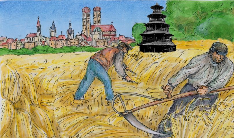 Die Ursprungsidee des englischen Gartens hatte einen militärischen Hintergrund. Im Jahr 1780 gab es keine kriegerischen Auseinandersetzungen. Da dachte der damalige Kurfürst in Bayern: „Mit welchen Arbeiten sollen wir die Soldaten sinnvoll beschäftigen? Ja, ich habs. Sie sollen landwirtschaftliche Fähigkeiten erlernen“.