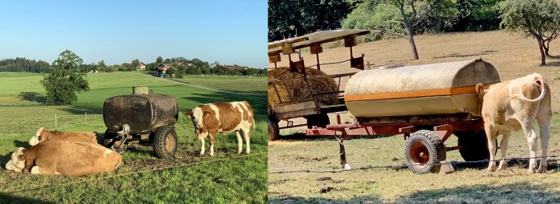 “Während bei uns im Hochtaunus die Bauern Futter kaufen müssen, weil auf den Weiden alles ausgetrocknet ist, mähen im Chiemgau die Bauern um die Wette” – mit diesem Vergleich machte Stefan Mühle aus Hasselbach in der hessischen Gemeinde Weilrod auf die katastrophale Lage der dortigen Bauern hin. Bereits zum vierten Mal in Folge haben die Bauern mit einem Trocken-Sommer zu kämpfen. Auch in den letzten Tagen, als im Rosenheimer Landkreis Hochwasser-Situation herrschte, war in Hessen kein Regenfall. “Wie es weiter geht, wissen wir selbst nicht, derzeit werden Viehfutter-Transporte von weit her organisiert” – so Stefan Mühle, der langjähriger Stammgast in der Ferienregion Chiemsee-Alpenland ist.