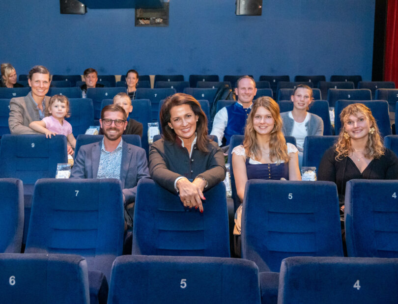 Bericht: Bayerisches Landwirtschaftsministerium – Foto zeigt Staatsministerin Michaela Kaniber (Mitte) mit den Landwirtinnen und Landwirten, die in dem Kinospot mitgewirkt haben. Foto: Judith Schmidhuber / StMELF