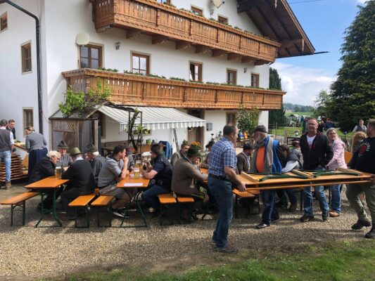 Für die Familien waren ein Karussell und eine Hüpfburg aufgebaut. Ein kleines Festzelt, Biertischgarnituren zwischen den Obstbäumen des Bernhacker-Hofes in Arbing und eine rundum gelungene Bewirtung durch Metzger Richard Grosse und seinem großen Helferteam trugen zudem zur Vatertags- und Ausflugs-Stimmung bei. „Etwa 50 Männer und Frauen sind heute im Einsatz bei Ausschank, Service und Kuchenbüffet, das ist eine riesige Leistung des Vereins“ – so Vorsitzender Lother Leuthold stolz auf seine Mitglieder und deren Familien. Bei einer Verlosung ging der Hauptpreis, ein D 15 Deutz an Michael Wagner von den „Koimbriada“ aus Höslwang, die mit einem Leistungsprüfstand vor Ort waren. Zur Volksfeststimmung trugen auch die Musikanten der Kapelle „Alpenbeat“ im Festzelt bei, so dass der am vormittag begonnene Frühschoppen bis in den späten nachmittag verlängert wurde. Nach dem gelungenen Saison-Auftakt gilt es für die Bulldogfreunde Prien-Atzing wieder auszurücken, wenn in Bulldog-Reichweite wieder ein entsprechendes Fest angesagt ist. Der nächste Termin ist am Pfingstmontag, 20. Mai, wenn die Schlepperfreunde von Söllhuben zu ihrem Treffen einladen. „Da wollen wir wieder mit vielen Traktoren und gemeinsam hinfahren und das Treffen dann als Gäste genießen“ – so Leonhard Jell als Zweiter Vorsitzender und Gastgeber auf dem Bernhackerhof von Arbing.