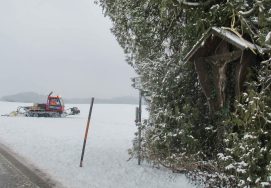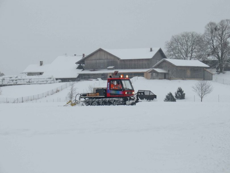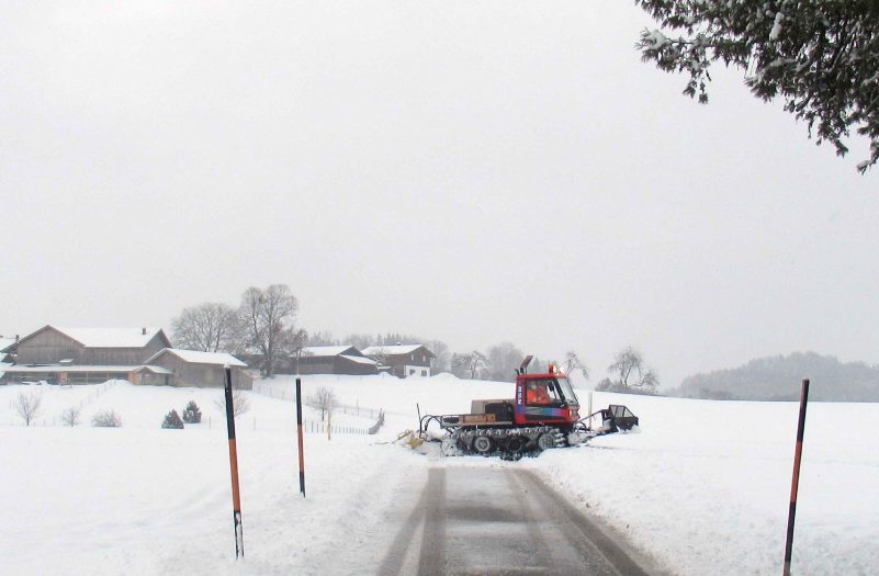 Fotos: Hötzelsperger – Priener Bauhof präpariert die neue Langlaufloipe Atzing.