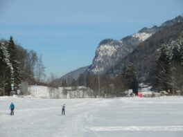Zurück fahre ich über den Kaiserwinkel, Kössen, Reit im Winkl, das Dreiseengebiet und Ruhpolding – überall traumhafte Winterlandschaft, aber relativ wenig Schnee, nirgends gespurte Loipen oder Liftbetrieb. Aber wenn die angekündigten Niederschläge nicht in Regen fallen, wird sich das bis zum Wochenende ändern und dann werden auch die ersten Skilifte laufen.