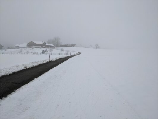 Der Winter ist zurück in Prien, aber die Schneedecke ist nicht besonders hoch. Die Meldung, dass die Atzinger Loipe fahrbar ist, wundert mich daher ein wenig.