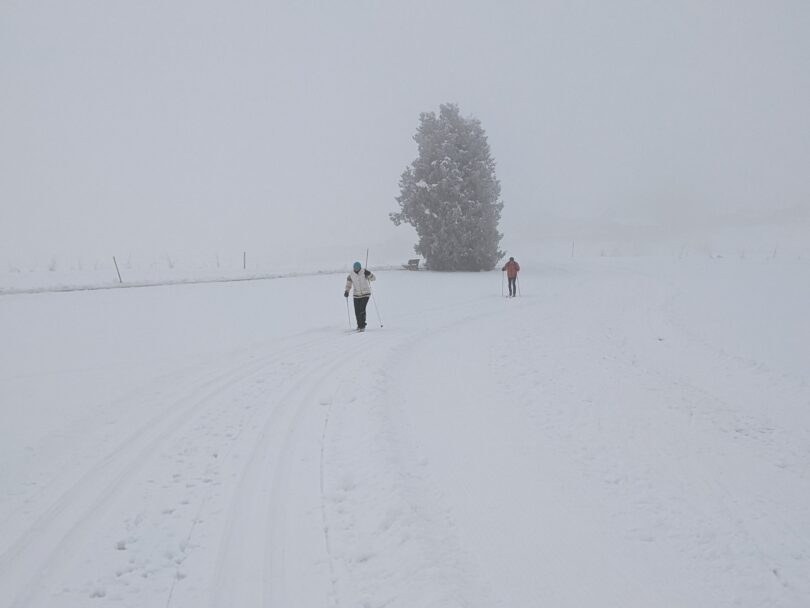 Für Ortsunkundige war es heute nichts, denn die Loipe ist nicht beschildert und der Nebel war so dicht, dass man sich schon gut auskennen musste, um wieder zurück zum Parkplatz zu finden.