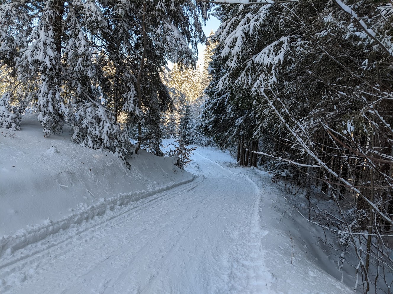 Abfahrt auf der Verbindungsloipe Hintergschwendt – Aigen