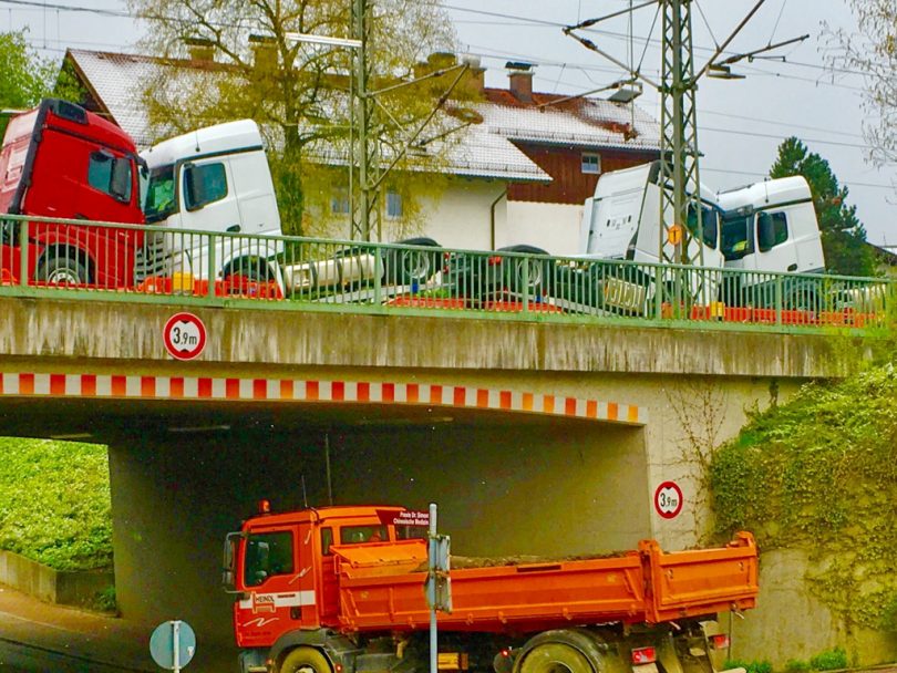Lastwagen-Warten wegen Bahn-Arbeiten in Prien