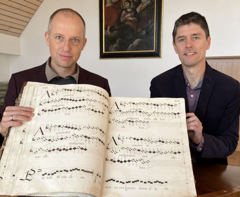 – Ekkehard Windrich (links) und Thomas Netter präsentieren das Laufener Chorbuch mit Kompositionen von Pietro Bonamico.