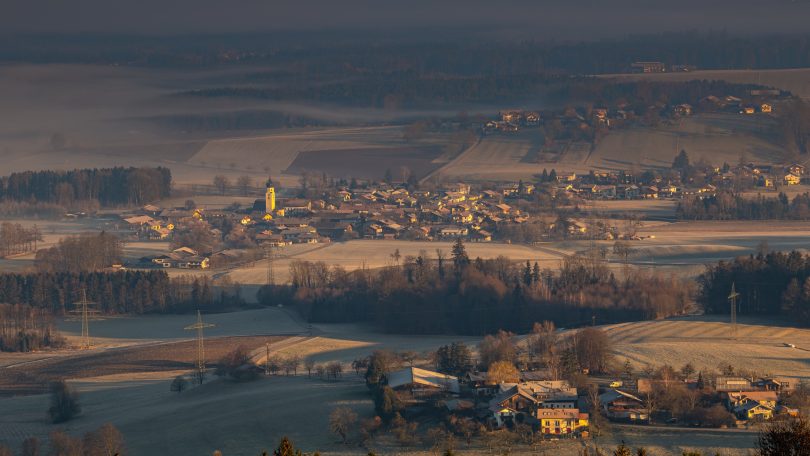 Auch wenn in diesen Tagen die Sonne das Wetter und die Landschaftsbilder bestimmte, so zeigte sich am letzten Februar-Sonntag-Morgen in manchen Orten des Rosenheimer Landes die Orte mit winterlicher Frische – so wie dieser Blick auf den Rohrdorfer Ortsteil Lauterbach zeigt.