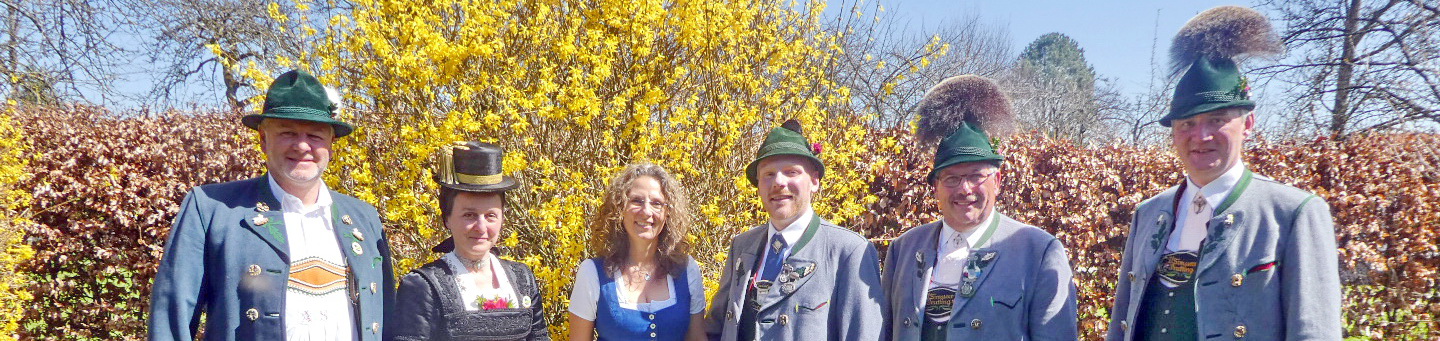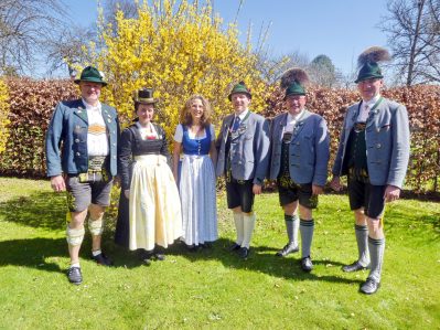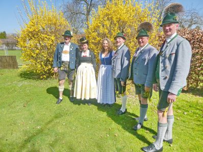 Foto/s: Hötzelsperger – Gemeinsam starten sie in den Trachtensommer 2018 von links:  2. Vorstand Andreas Schmid und 1. Vorständin Liesi Hilger aus Rottau, Geschäftsführerin Christina Pfaffinger vom Tourismusverband Chiemsee-Alpenland, Sepp Brem, Festleiter beim Trachtenverein Lauterbach, Vorstand Ludwig Redl und Festleiter Klaus Gschwendtner vom Trachtenverein Prutting.