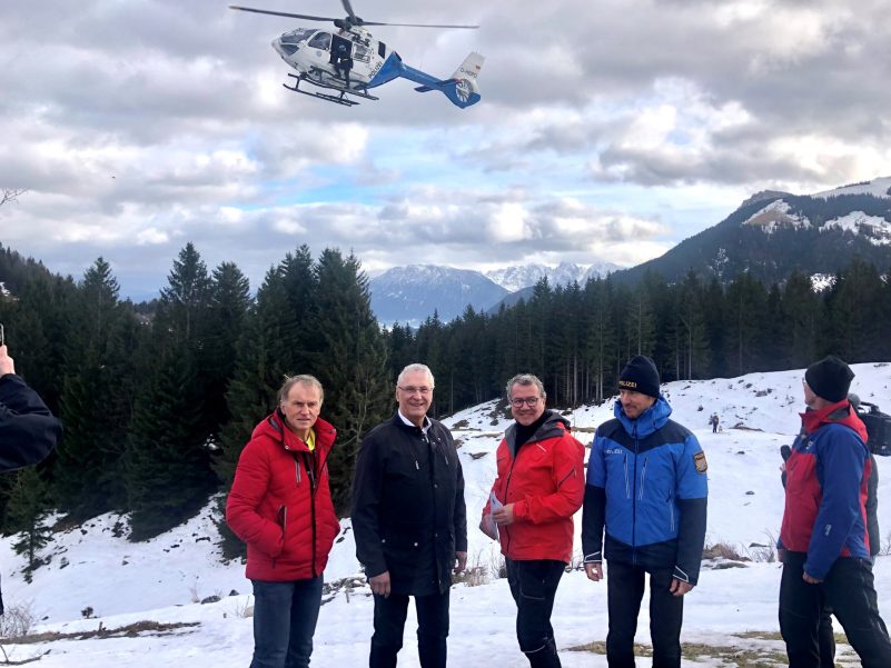 Ein Novum stellte Herrmann für die bayerischen Polizeihubschrauber vor. Es handelt sich um spezielle Detektoren, die seit Herbst dieses Jahres zur Vermisstensuche aus der Luft eingesetzt werden können. Die Bergwacht hat die zwei ‘RECCO-SAR-Detektoren’ beschafft und stellt sie der Polizei im Einsatzfall zur Verfügung. Voraussetzung für die Ortung Verschütteter mit diesem System ist ein spezieller ‘Reflektor’, der beispielsweise in Jacken, Hosen, Helmen oder Rucksäcken integriert ist. “Egal ob diese Reflektoren oder klassische Lawinenverschüttetensuchgeräte eingesetzt werden: Wintersportler sollten abseits der Pisten immer auch eine Lawinennotfallausrüstung mitführen”, machte Herrmann gemeinsam mit dem Landesvorsitzenden der Bergwacht Thomas Lobensteiner deutlich. Außerdem verwies der Innenminister darauf, dass die neueste Generation der Polizeihubschrauber, die ab Anfang 2023 ausgeliefert werden soll, deutlich leistungsfähiger wird. “Die acht neuen Maschinen vom Typ Airbus H145 können doppelt so viele Rettungskräfte oder zu Rettende transportieren als bisher”, so Herrmann. “Ohne Zwischenlandung können damit bis zu sechs Verunglückte mit der Rettungswinde an Bord geholt werden.” Für den Flottenwechsel wird der Freistaat rund 145 Millionen Euro investieren.